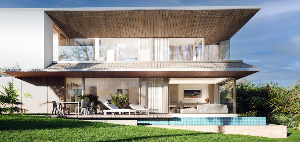 El proyecto, creado por los arquitectos del Atelier Lopezneiraciaurri en colaboración con el equipo de Avantia Promociones y Servicios, subraya la excepcional calidad e innovación de esta colección excelente de viviendas, creando un punto de referencia para la zona en villas privadas de lujo. Espaciosas, aireadas y confortables, las villas están concebidas en dos grandes volúmenes, colocados uno sobre otro, que ingeniosamente parecen deslizarse y superponerse, creando acogedores porches y terrazas sombreadas. Su diseño, basado en paneles de madera en los laterales, permite grandes ventanales que maximizan la luz natural y las vistas.
